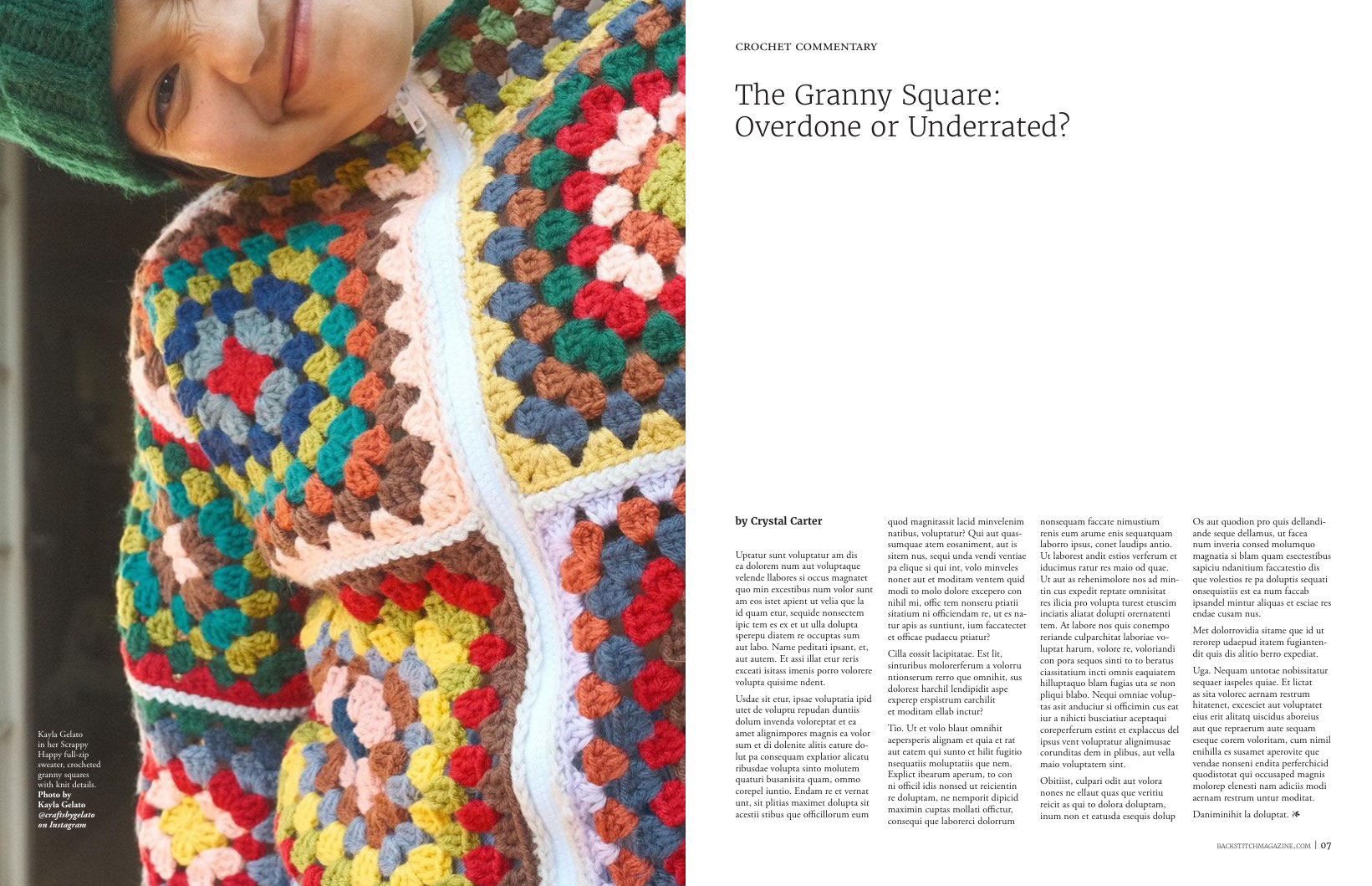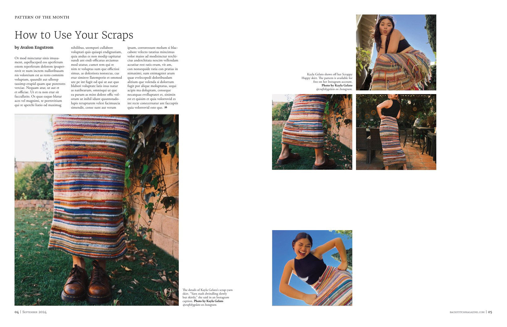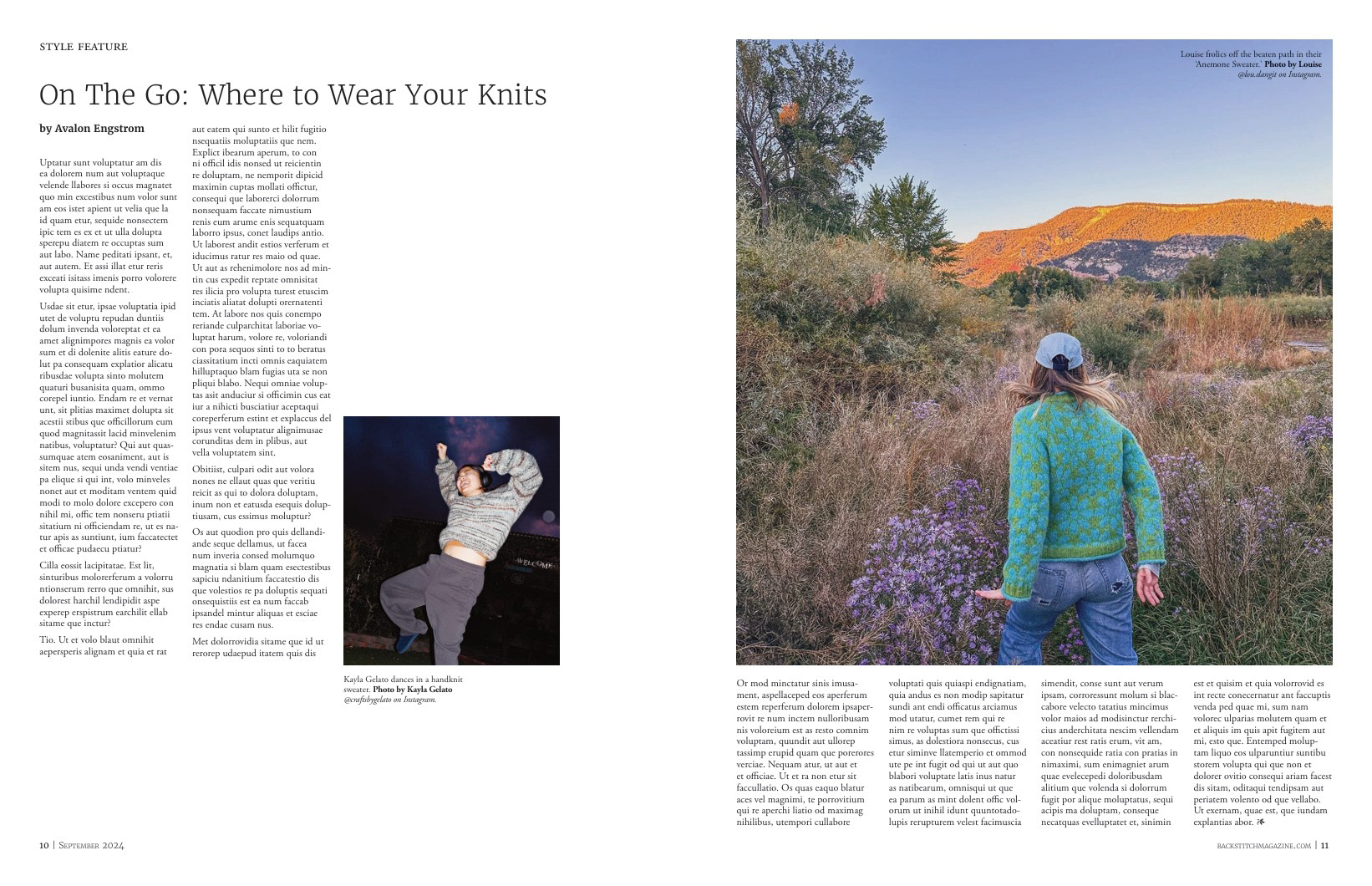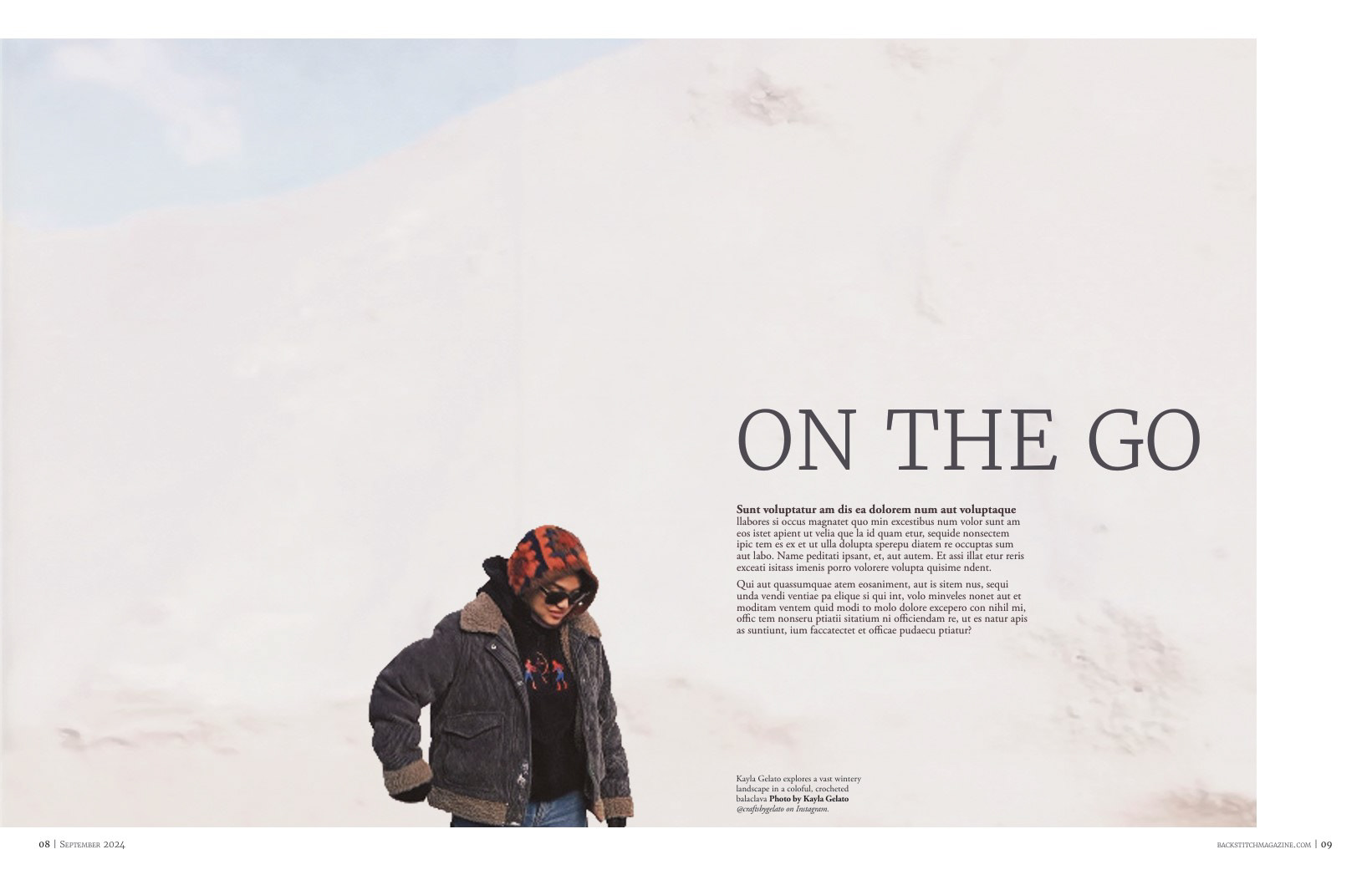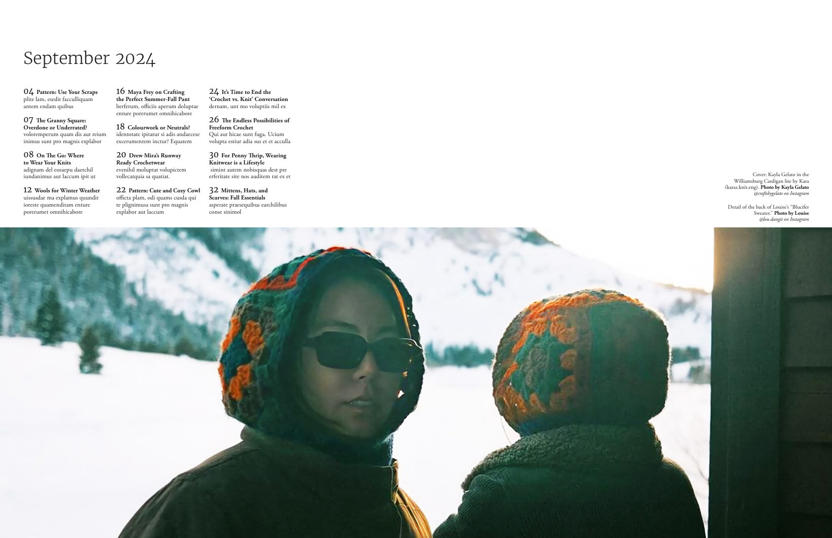 Backstitch is a contemporary knitting magazine with a focus on slow fashion and handmade items. Presented with a clean, quiet, and open design, it mirrors the meditative process of knitting and crochet. The images emphasize the styling of knitwear, with a fun, energetic feel that balances the intentional utilization of white space throughout.